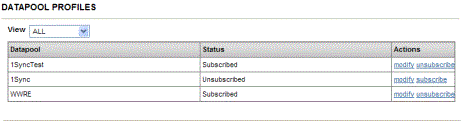 - Modify a Datapool Profile -You can modify the data pool profile by clicking Modify. The Datapool Profiles - Synchronization Formats page is displayed. From this page, you can: