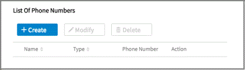 - Click Create to add the phone numbers. The Phone Number page is displayed.