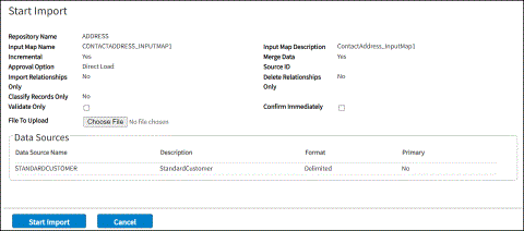 Based on the selection of the Approval Options when creating an input map, the different options are displayed on the Start Import page.