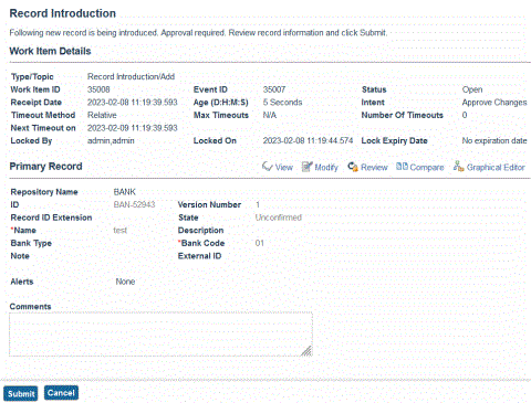 Primary Record section is available only for the record operation type of work items (that is, record add, record modify, record delete, or record rejection).