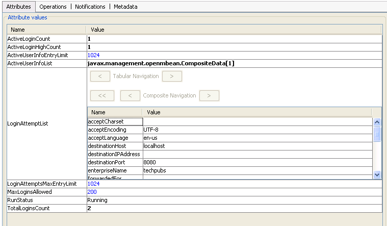 For successful login, the session ID can be used to find additional information captured under Active User Information. To view login attmept information, double-click the composite data of the LoginAttemptList attribute.