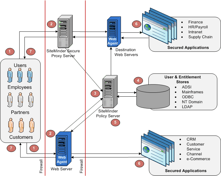 The SiteMinder Policy Server evaluates the user authorization and grants access.