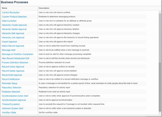 You see this page after clicking the Business Processes link in the menu. It lists all the rule domains including the custom defined.