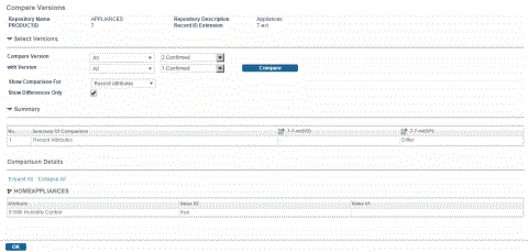 - From the Repository Name drop-down list, select the name of the repository from which you want to compare records versions.