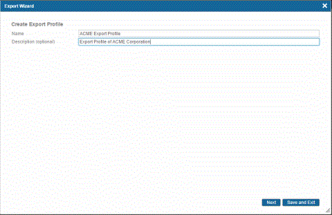 - In the Description field, type the description of the export profile. This is optional field.