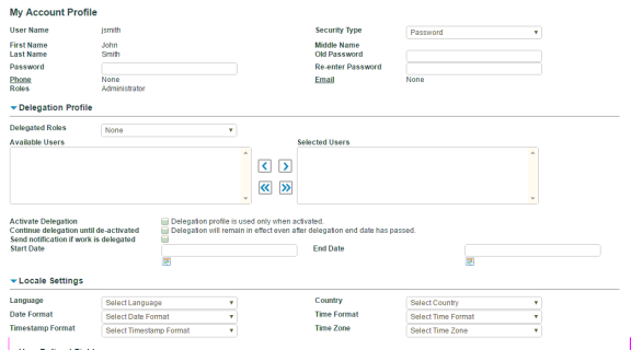 - Changes to your profile can be done here. However, if you have privileges to maintain user accounts, you can update your profile from the User Accounts page as well.