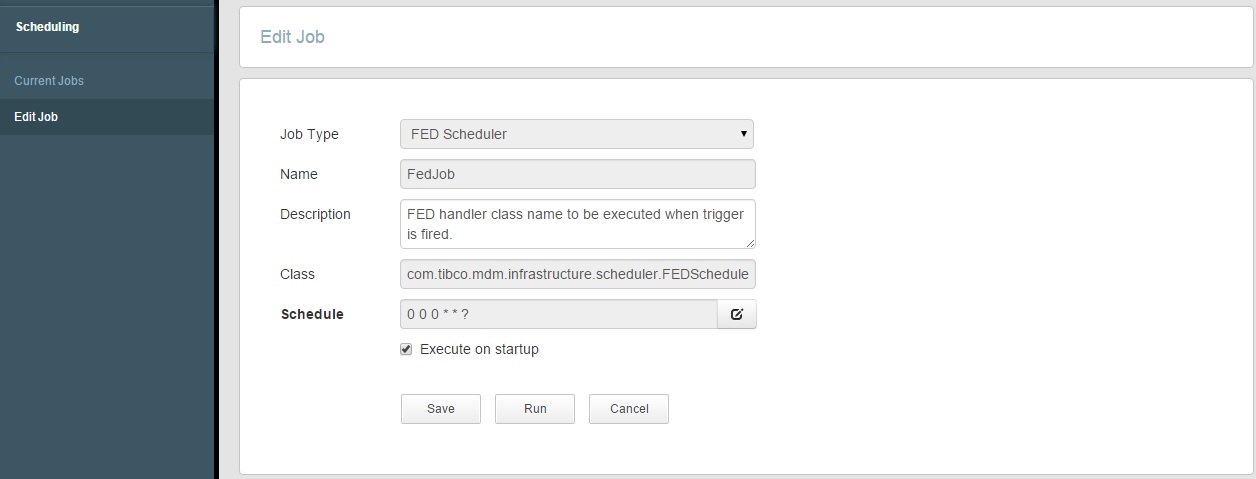 Scheduler runs the job immediately after modifying the current job. For more information, see Running a Job.Note: The MDM server should be running to start the job. If the MDM server is not running, only the job is added in CronSchedules.xml.