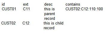 An Explicit relationship allows you to relate records within a repository. The relation between the records is achieved using the CONTAINS attribute. Every repository has a predefined attribute called CONTAINS, which is defined as a String. The attribute cannot be manipulated using the user interface. The CONTAINS attribute is used only during the Import process. It is used to manage relationships with child records, not with parent records.