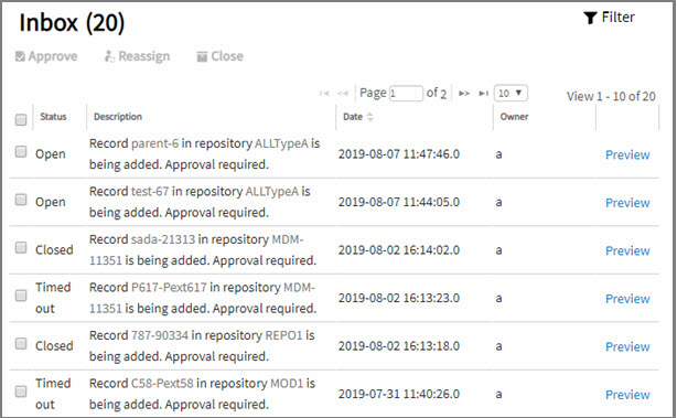 The UI for the Extended Inbox is redesigned. You can select a single or multiple work items and approve, reassign, and close work items.