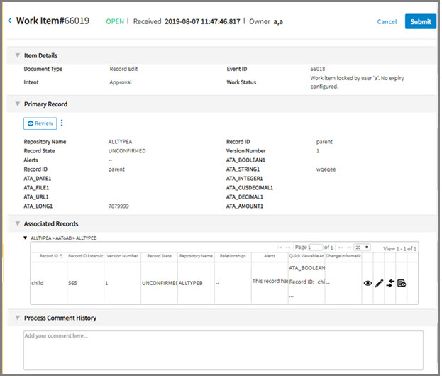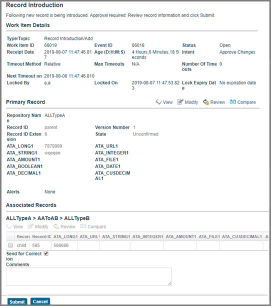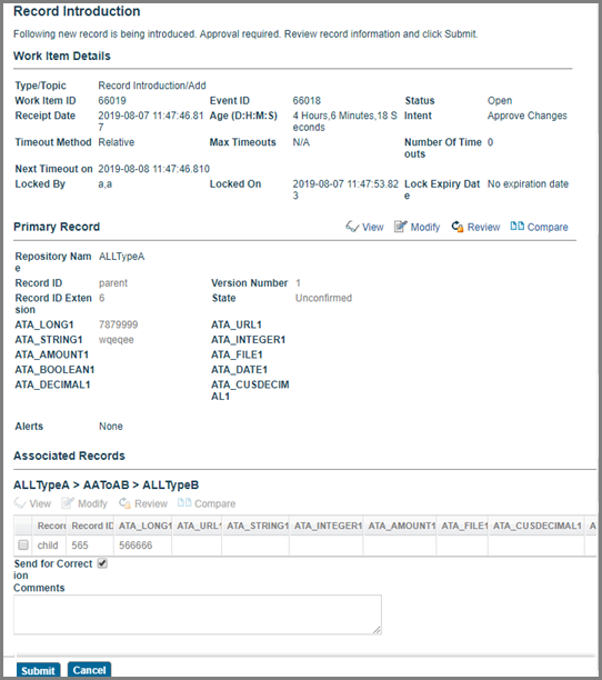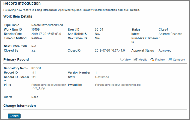 Primary Record section is available only for the record operation type of work items (that is, record add, record modify, record delete, or record rejection).