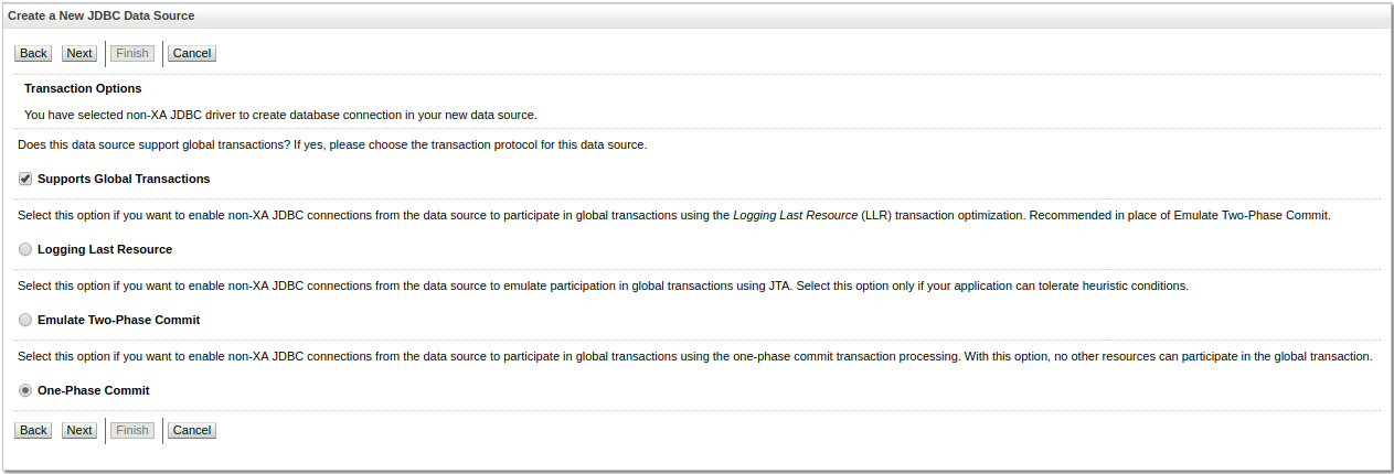 - Click Next. The Create a New JDBC Data Source page is displayed.