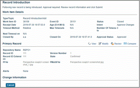 Primary Record section is available only for the record operation type of work items (that is, record add, record modify, record delete, or record rejection).