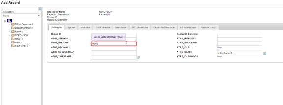 - Enter values in the Record ID and Record ID Extension fields. The values are displayed in tree header at the left side.
