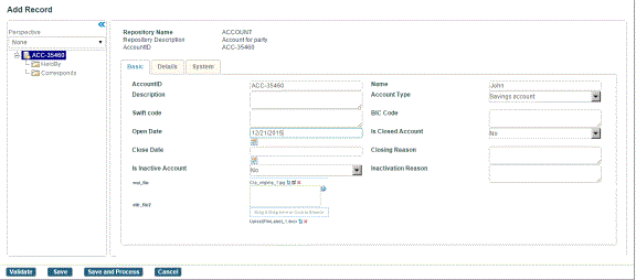 - Enter values in other fields. The field names are displayed based on the attributes created for each repository.