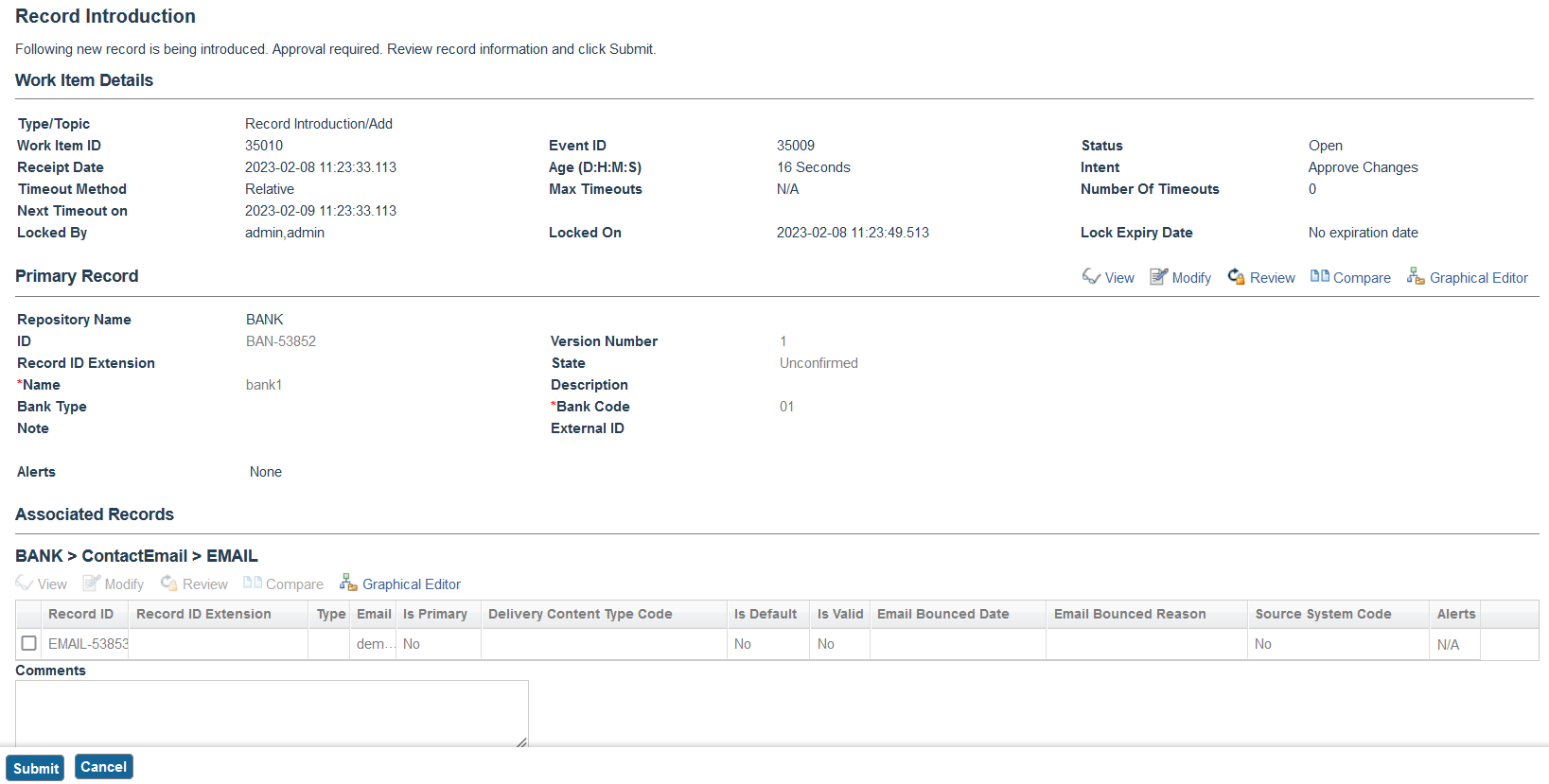 Primary Record section is available only for the record operation type of work items (that is, record add, record modify, record delete, or record rejection).
