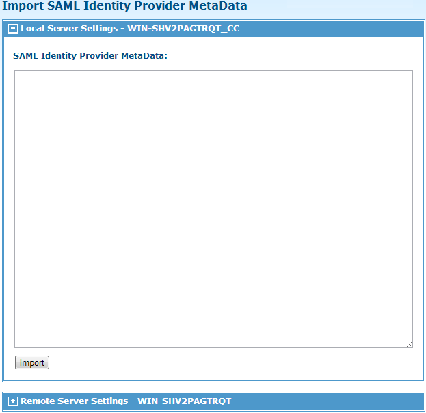 The following figure shows the Import SAML Identity Provider MetaData page: