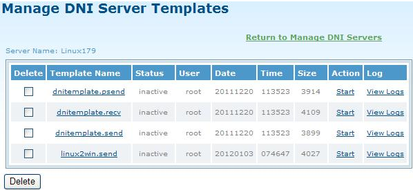 You can click the name of the server under the Server Name column to manage the DNI server templates on the Manage DNI Server Template page as shown in the following figure.