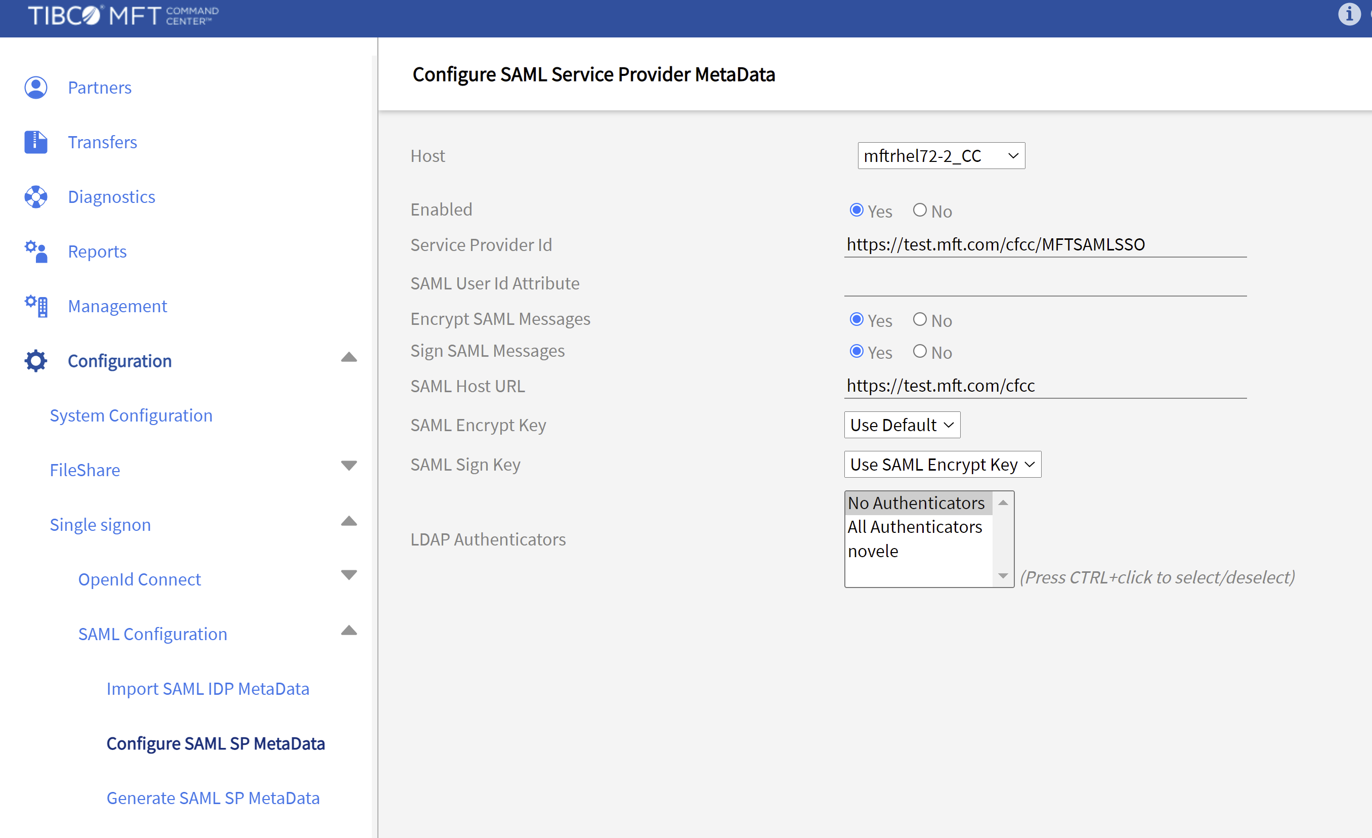 | SAML Host URL | Defines the URL of the MFT server. |
