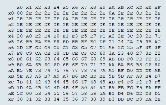 ASCII to EBCDIC Conversion Table Example