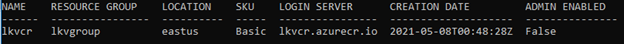 acr | Azure Container Registry(ACR) which provides cloud-based container image building for platforms including Linux, Windows. Use Azure container registries with your existing container development and deployment pipelines, or use Azure Container Registry Tasks to build container images in Azure. | This is an user selected meaningful name which the user creates as explained below while creating ACR. |