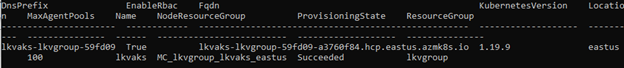 NOTE: If the provisioningState shows Starting that means your cluster hasn’t fully started yet. It takes around 6-7 minutes for the cluster to completely provision into the Succeeded status which ensure that your cluster is up and running.