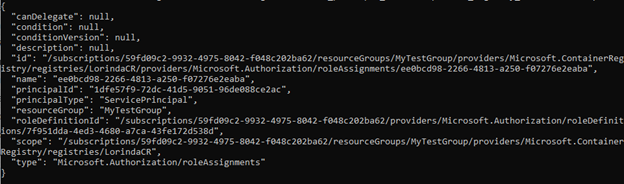 ForbiddenError: The client '1dfe57f9-72dc-41d5-9051-96de088ce2ac' with object id '1dfe57f9-72dc-41d5-9051-96de088ce2ac' does not have authorization to perform action 'Microsoft.Authorization/roleAssignments/write' over scope '/subscriptions/59fd09c2-9932-4975-8042-f048c202ba62/resourceGroups/MyTestGroup/providers/Microsoft.ContainerRegistry/registries/LorindaCR/providers/Microsoft.Authorization/roleAssignments/773f6e08-7f00-4c30-9926-97f698716738' or the scope is invalid. If access was recently granted, please refresh your credentials.