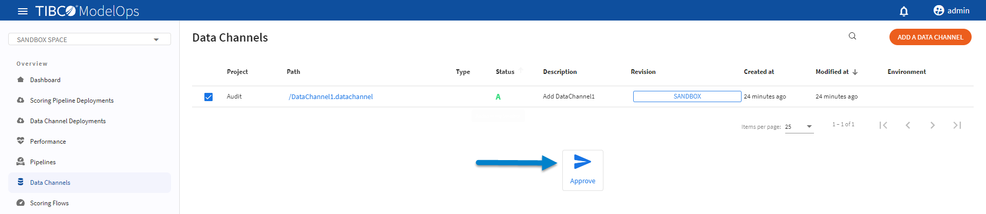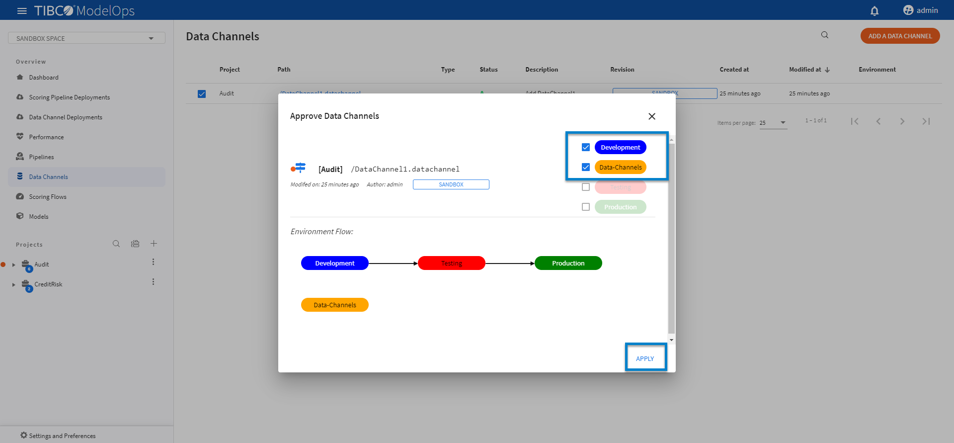 - Select the data channel that needs to be promoted by clicking the check box next to the project name.