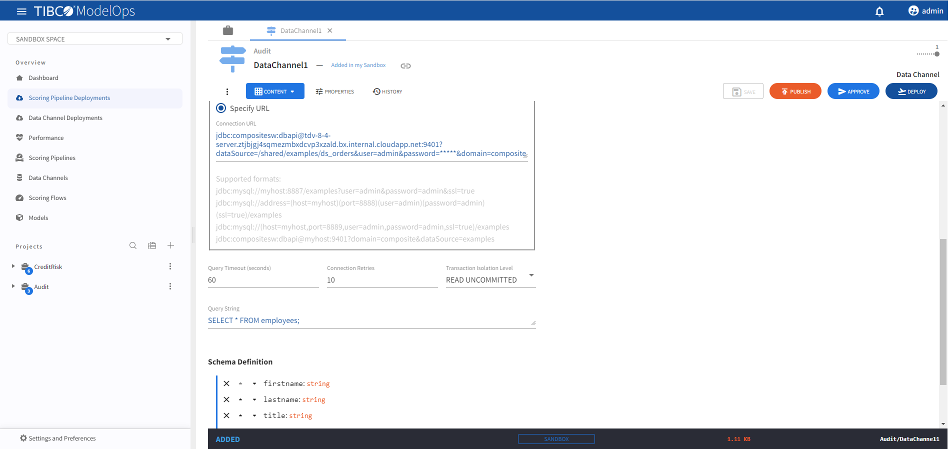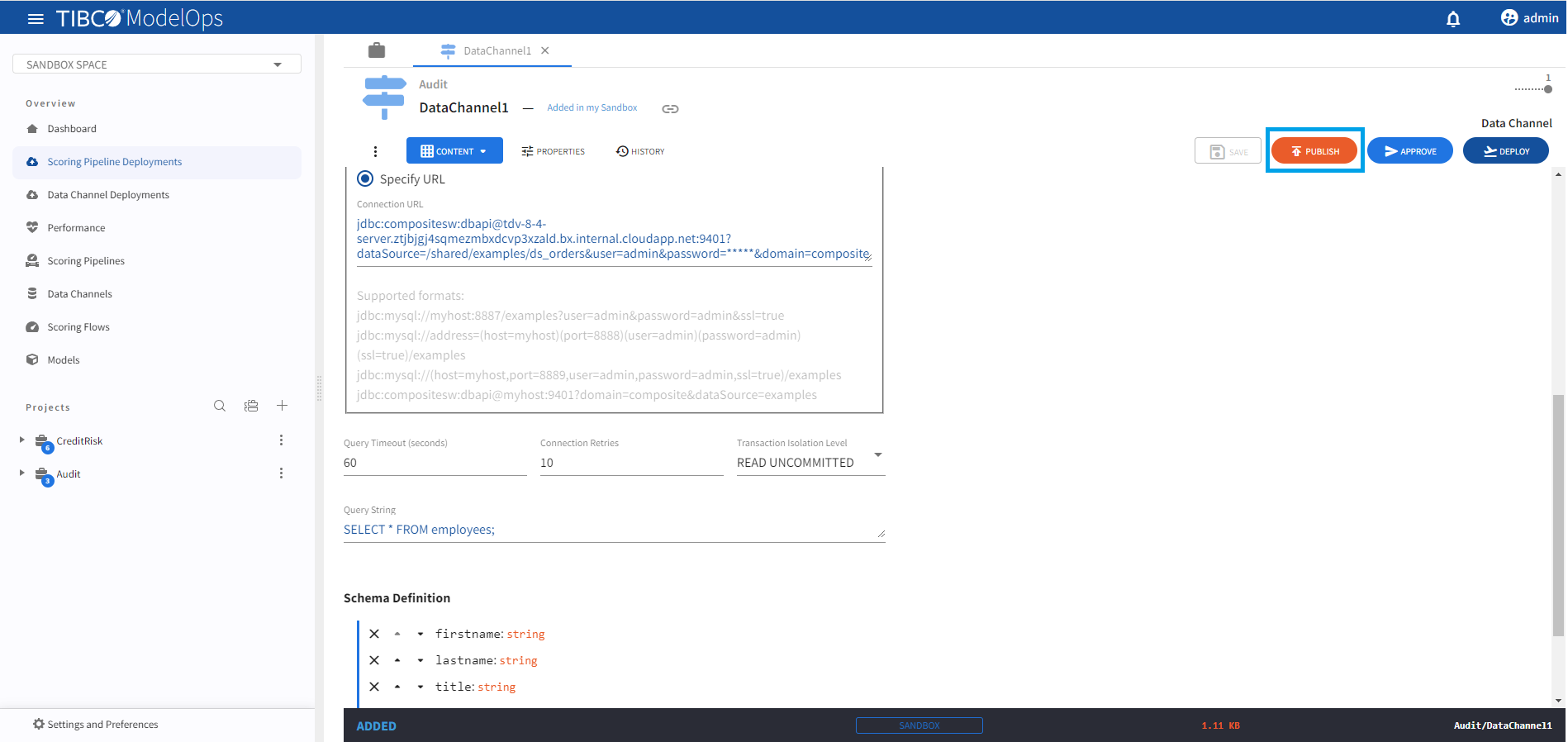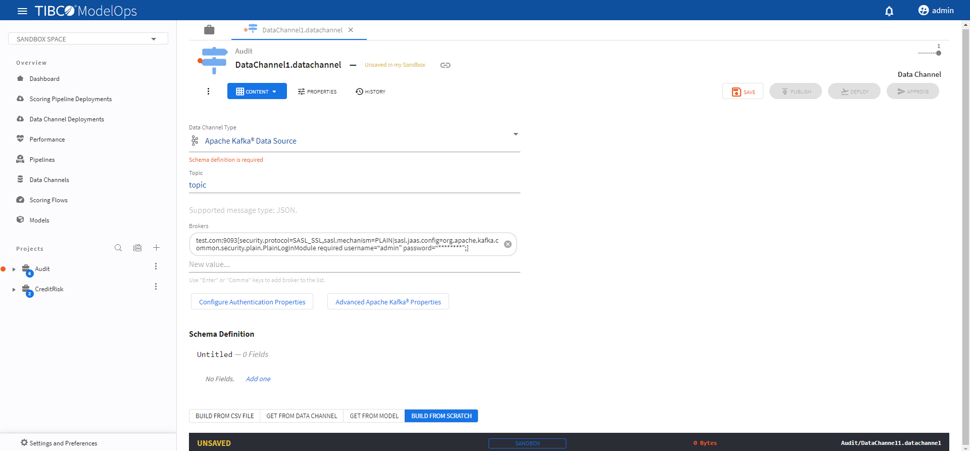 Note: You might see failure in pipeline deployment if the data channel is not accessible from the environment in which the scoring pipeline is being deployed.