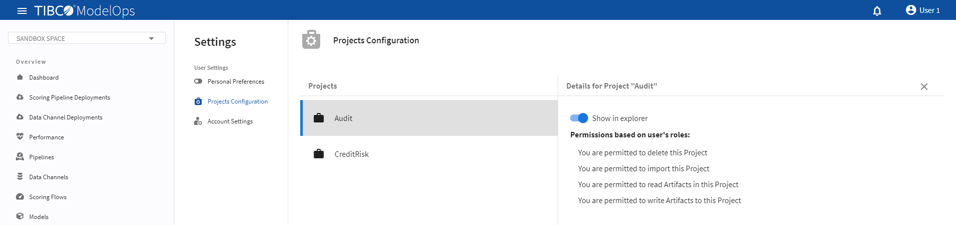 - Switch to SANDBOX SPACE view when a new artifact is added to the ModelOps UI.