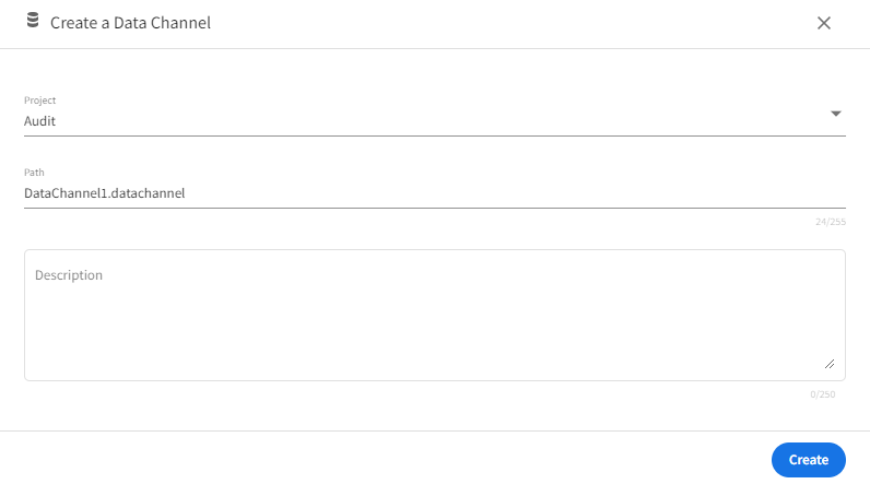 On the Create a Data Channel page, select the project, for which you wish to create the data channel, from the drop-down list.