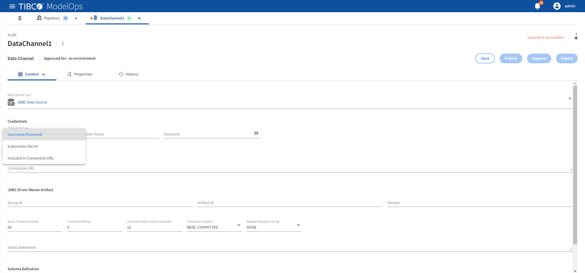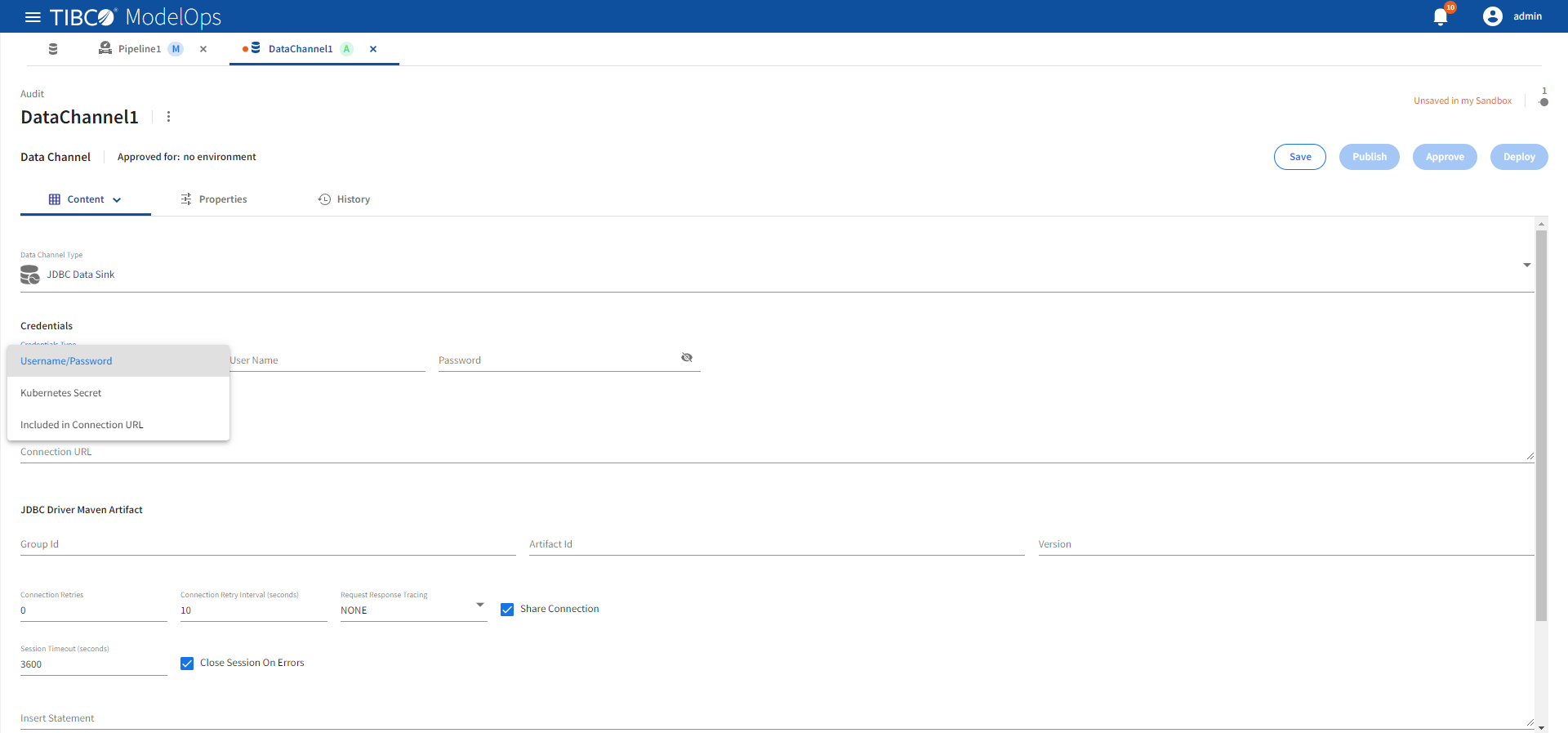- Now, when you attempt to deploy pipeline to the Development environment, you might encounter a Pipeline deployment failure, since its data channel is not accessible from the Development environment (only Data-Channels).
