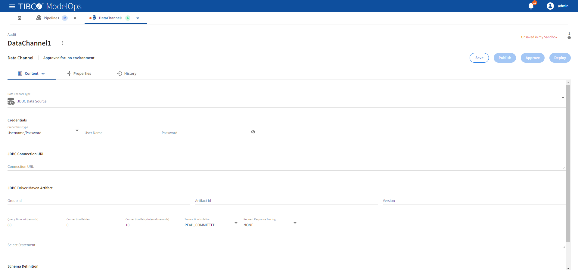 Note: You might see failure in pipeline deployment if the data channel is not accessible from the environment in which the scoring pipeline is being deployed.