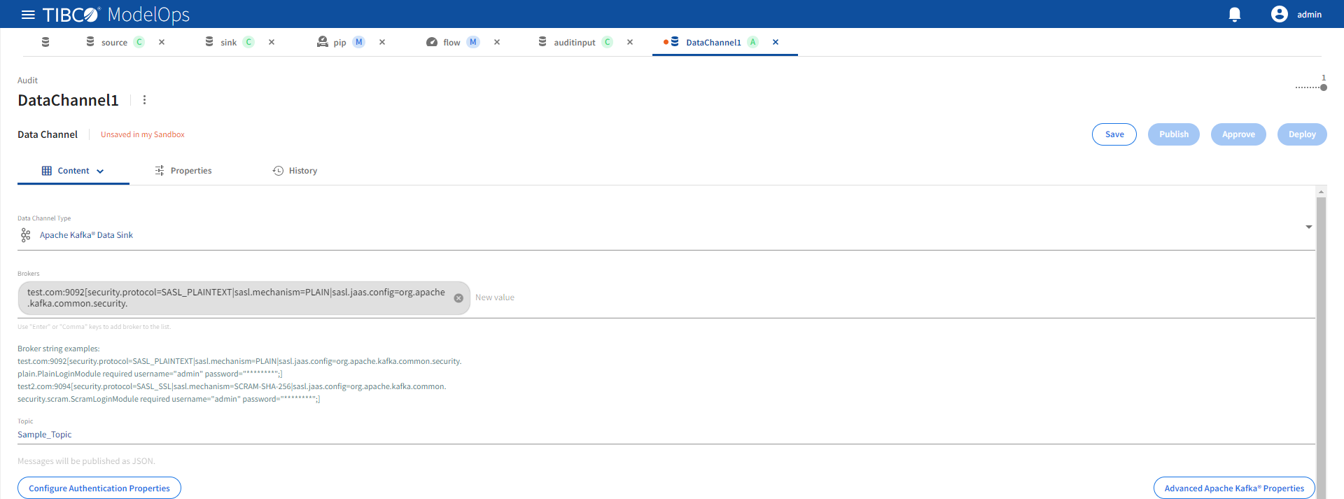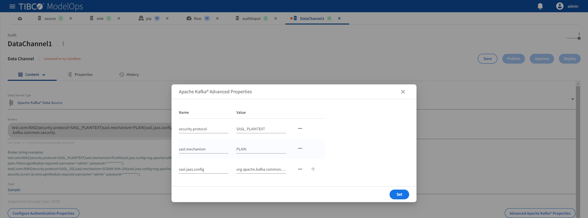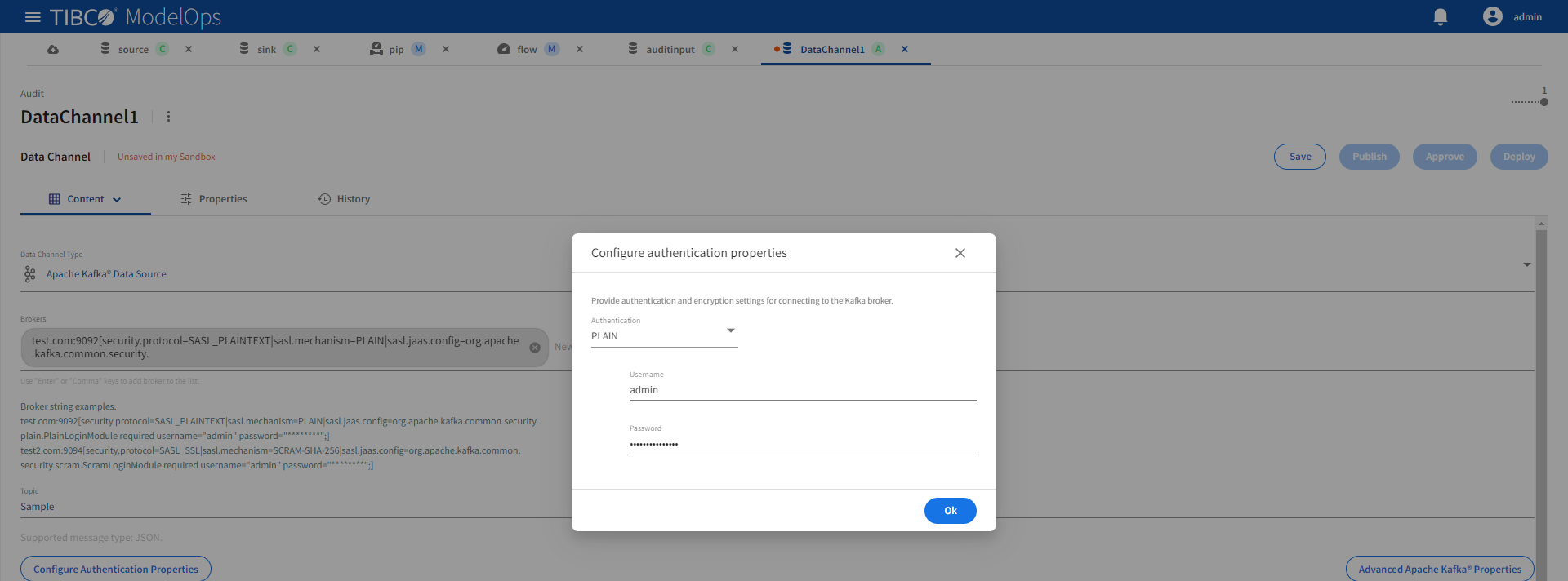 - Configuring Kafka data channel authentication using the Configure Authentication Properties dialog is preferred.