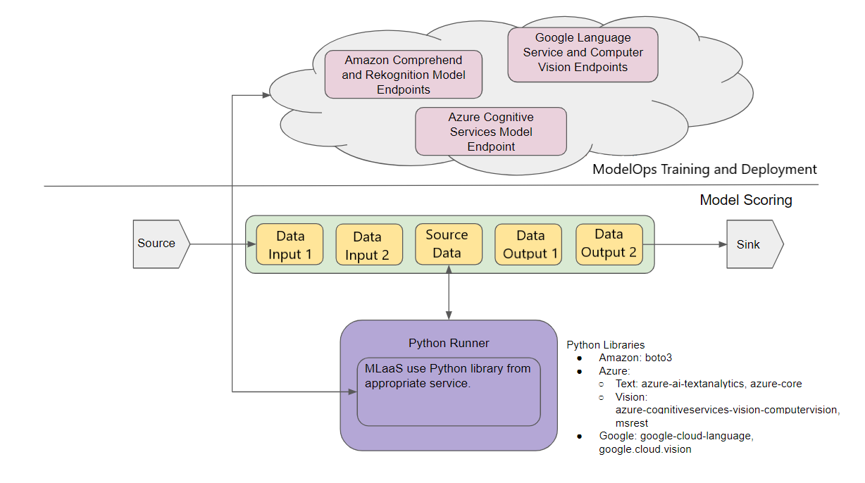 The python code running in the Python Runner is used to call out to external model services that are hosted in the cloud.