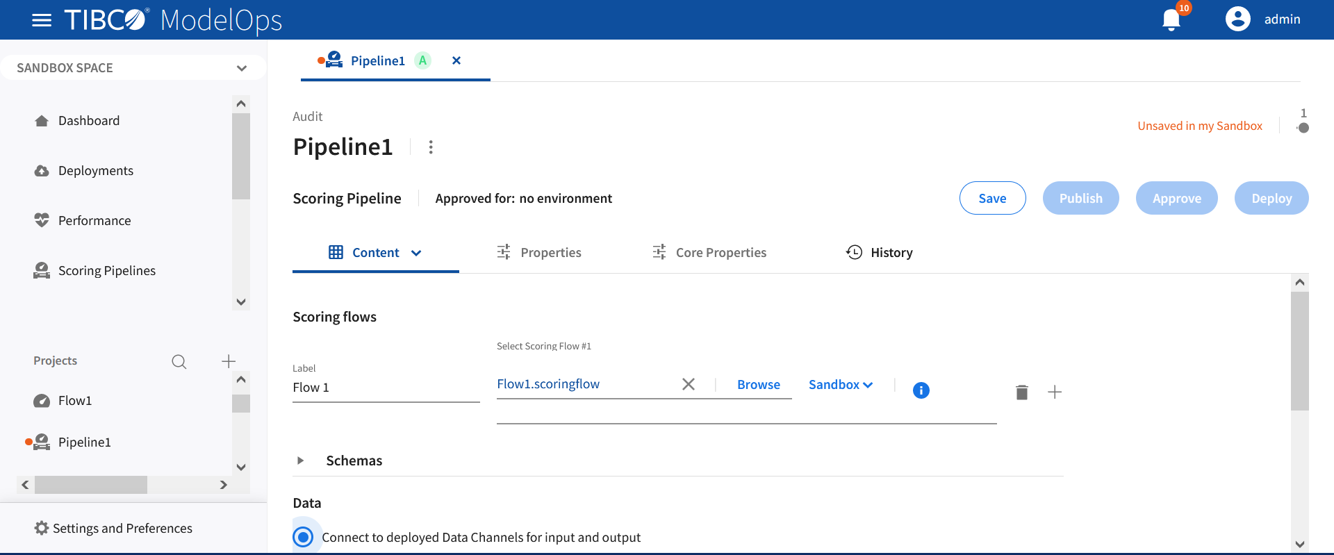 Next, click Publish on the main screen. Select the scoring pipeline to be published and add a relevant message. Click Publish.