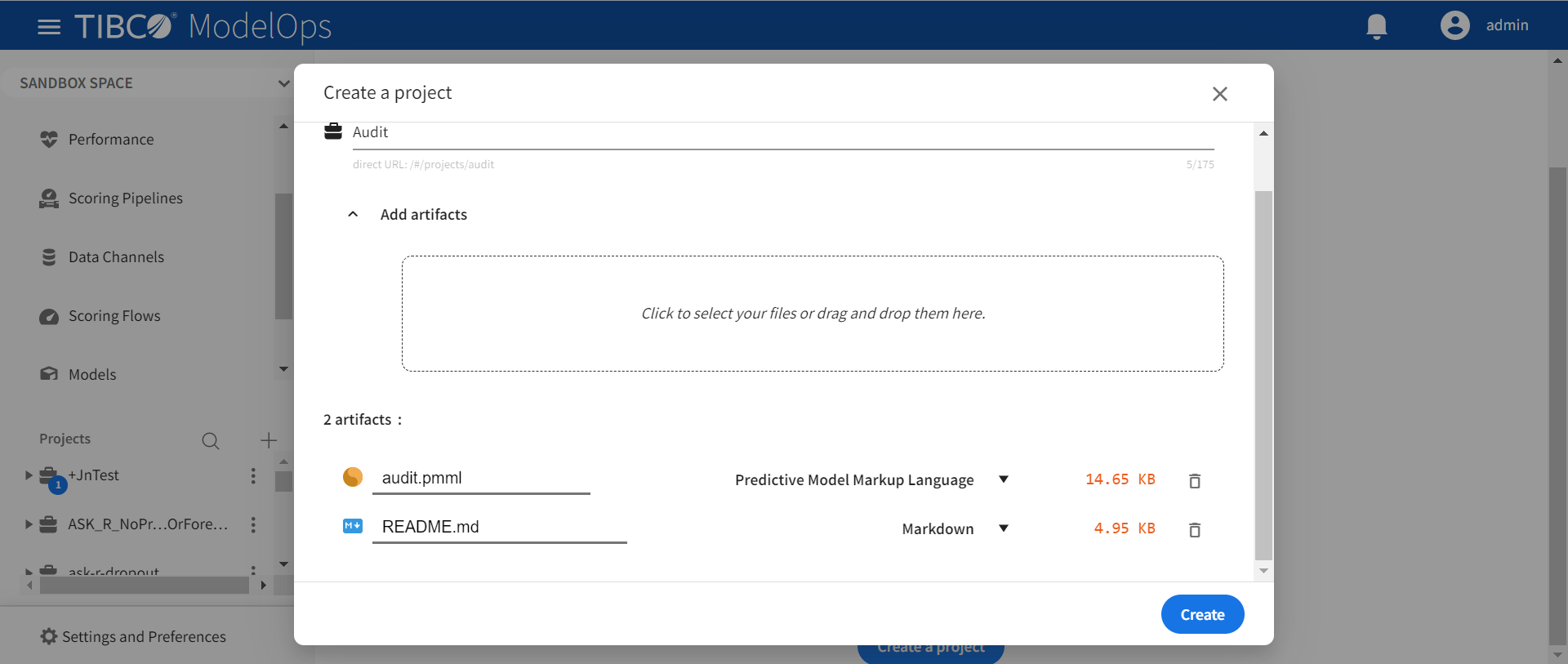 If TIBCO ModelOps contains only one project, the project name is selected automatically. Else, you can select the project name from the list.