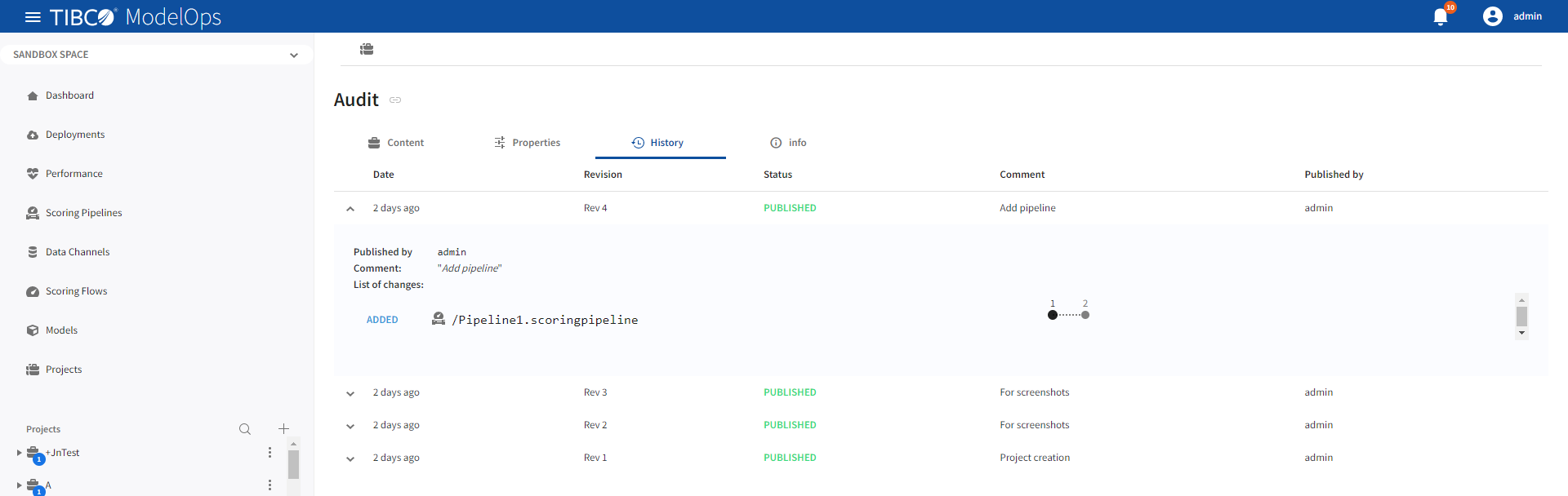 - Scoring Pipeline Deployments: Used to deploy and track different scoring pipelines