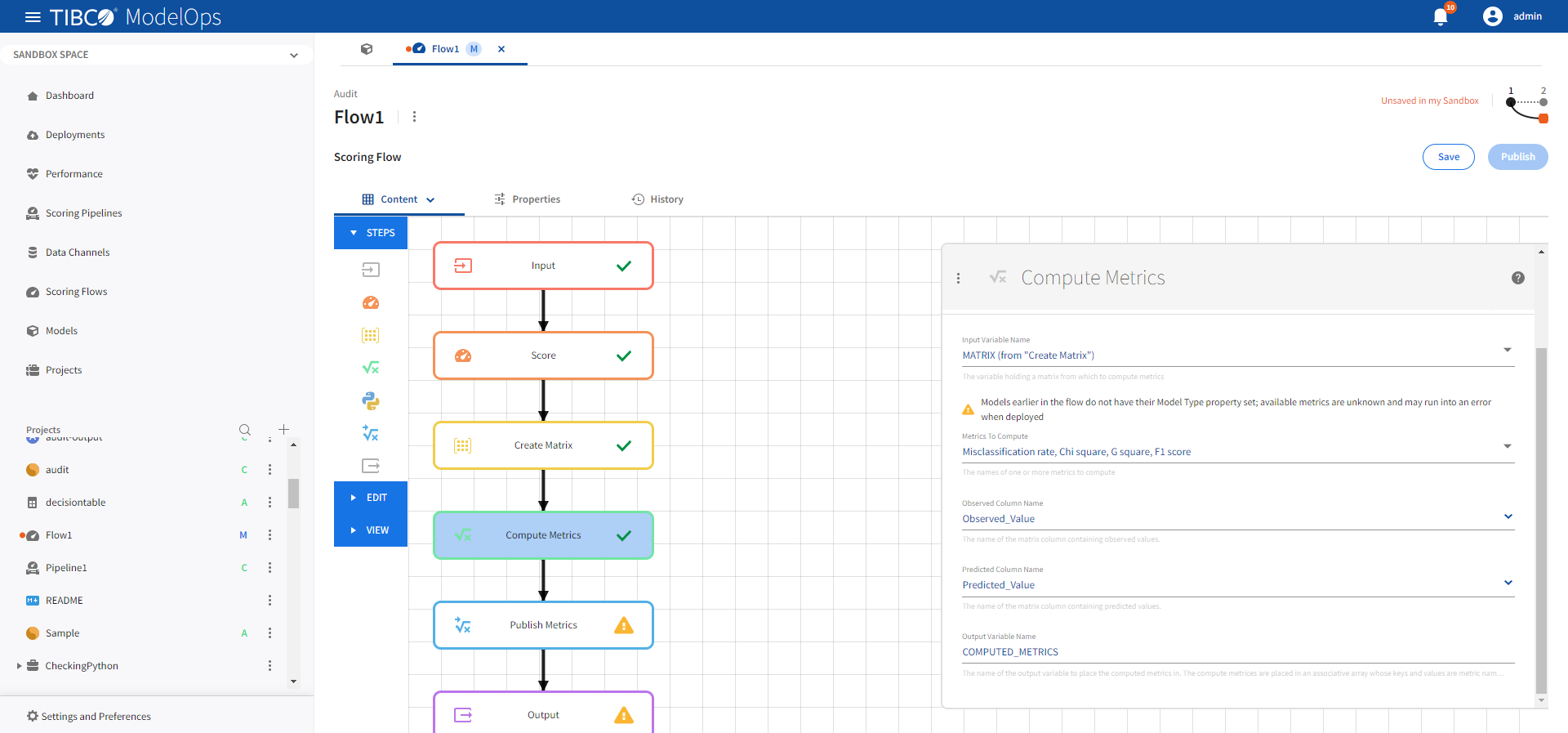 The Score, Compute Metrics, Publish Metrics template can be configured by following these steps: