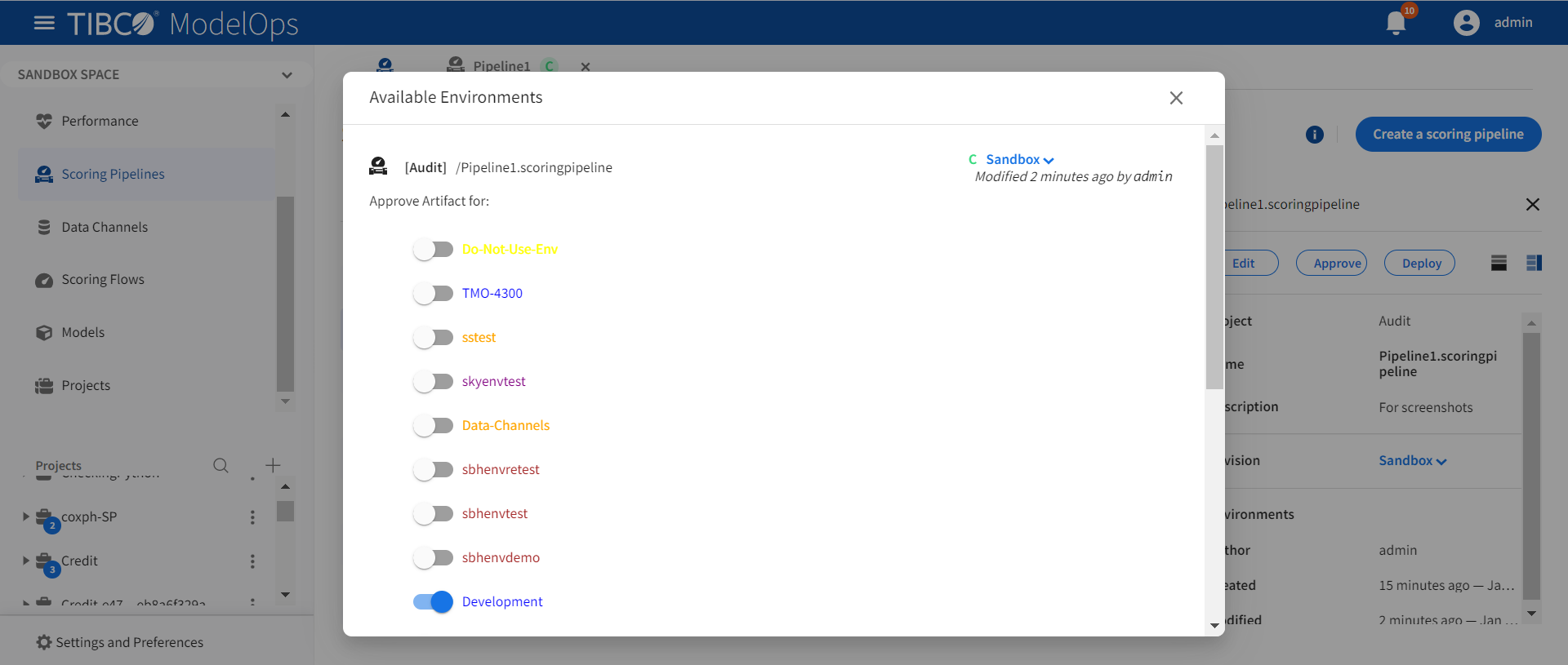 Select a scoring environment from the drop-down list.