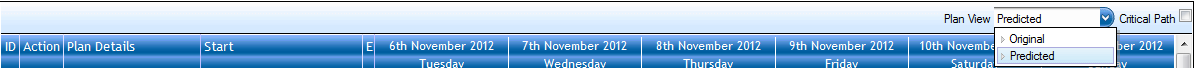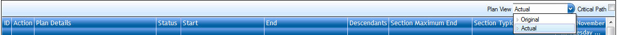 - Plan Status COMPLETE or CANCELLED: Shows the GANTT with Actual & Original view.