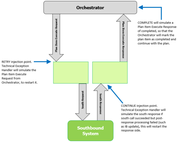 The Process Component Technical Exception Services Overview outlines at a high level, how the Retry, Continue and Complete services could potentially be implemented.