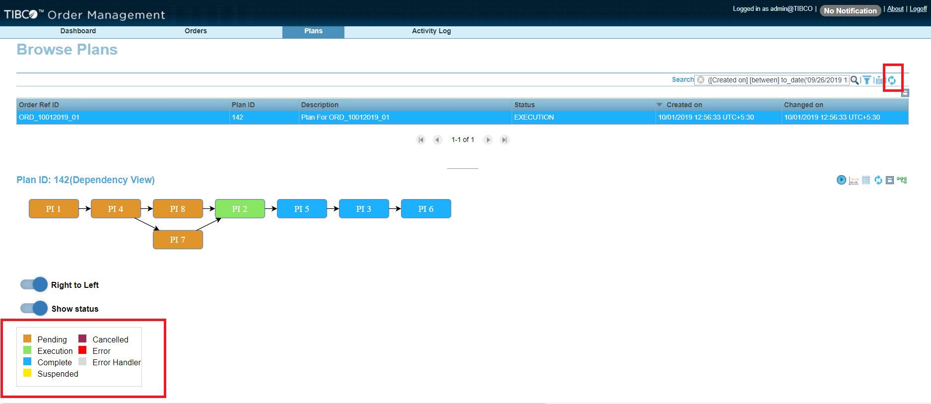 refresh icon to fetch the latest state of plan items, which is applied to the dependency view immediately.