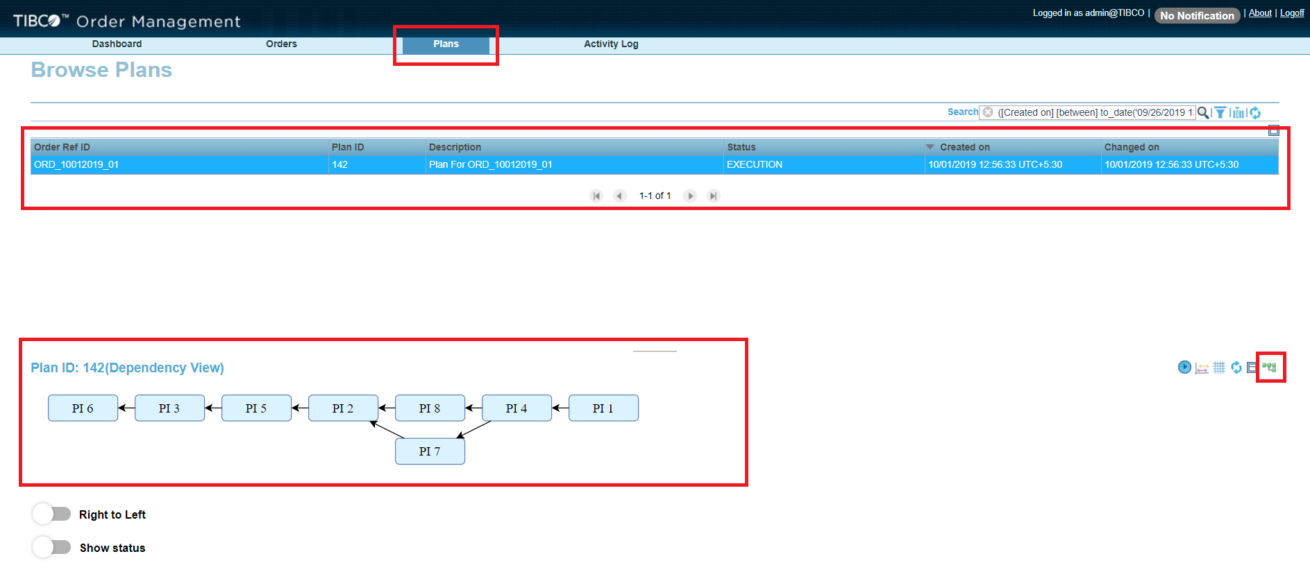 Plans tab in Order Management Server UI, from the plan list, select a plan and then click