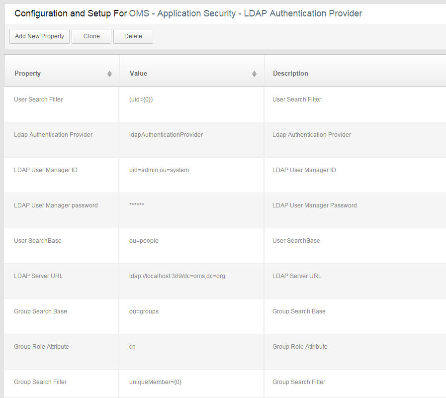The following properties are required to configure the Order Management Server to use external Lightweight Directory Access Protocol server authentication.
