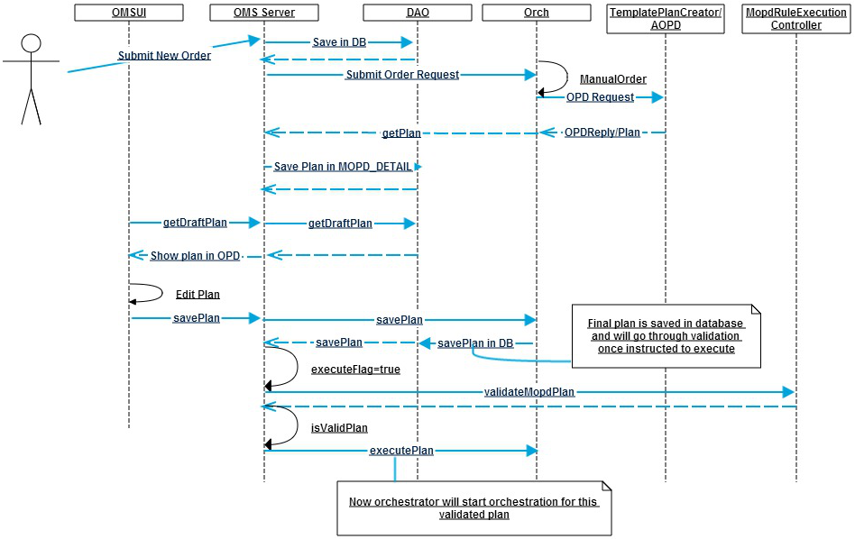 The sequence diagram for processing a new order with Manual Order Plan Development enables is as follows: