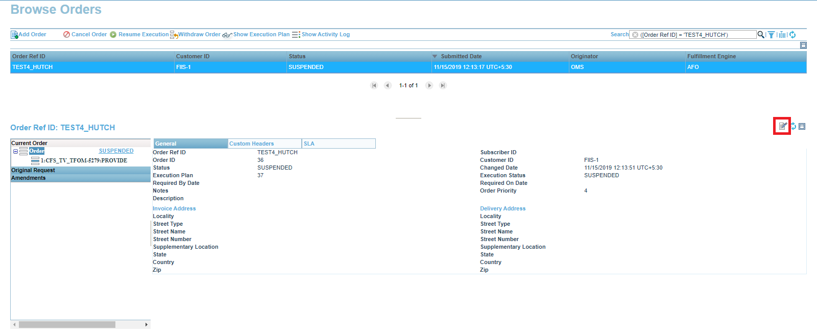 You can amend an order when an order is in SUSPENDED state. When an order is in SUSPENDED state you are given an option to edit the order.