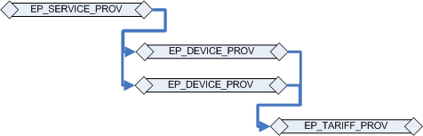 The process component EP_DEVICE_PROV can start only when EP_SERVICE_PROV is completed and EP_TARIFF_PROV can start only when EP_DEVICE_PROV is completed.
