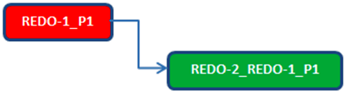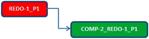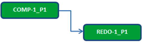 - The redo plan item always have a simple END-START point dependency on the compensatory plan item that is created, as shown in the following figure. This ensures that the designated tasks is restarted only after the compensatory tasks are finished.
