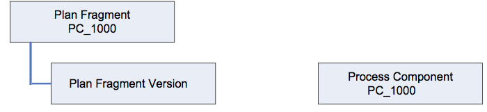 In this example plan fragment PC_1000 describes Process Component PC_1000. This Process Component might be invoked by a plan item by using different versions. Therefore plan fragment PC_1000 has Version 1 that maps the Process Component of the same version. The base plan fragment always defines the currently active Process Component version.