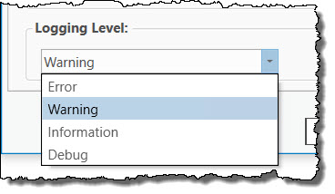 The logging level selection drop down is used to control the amount of logging that is done by the OpenSpirit extension.